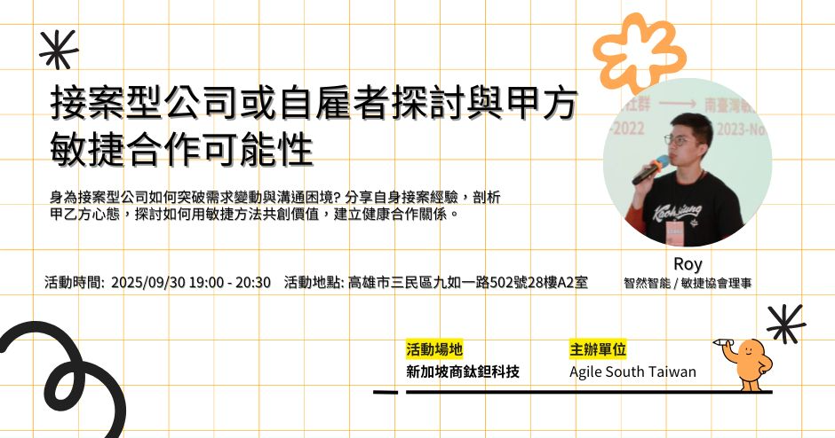 接案型公司或自雇者探討與甲方敏捷合作可能性 | Agile South Taiwan